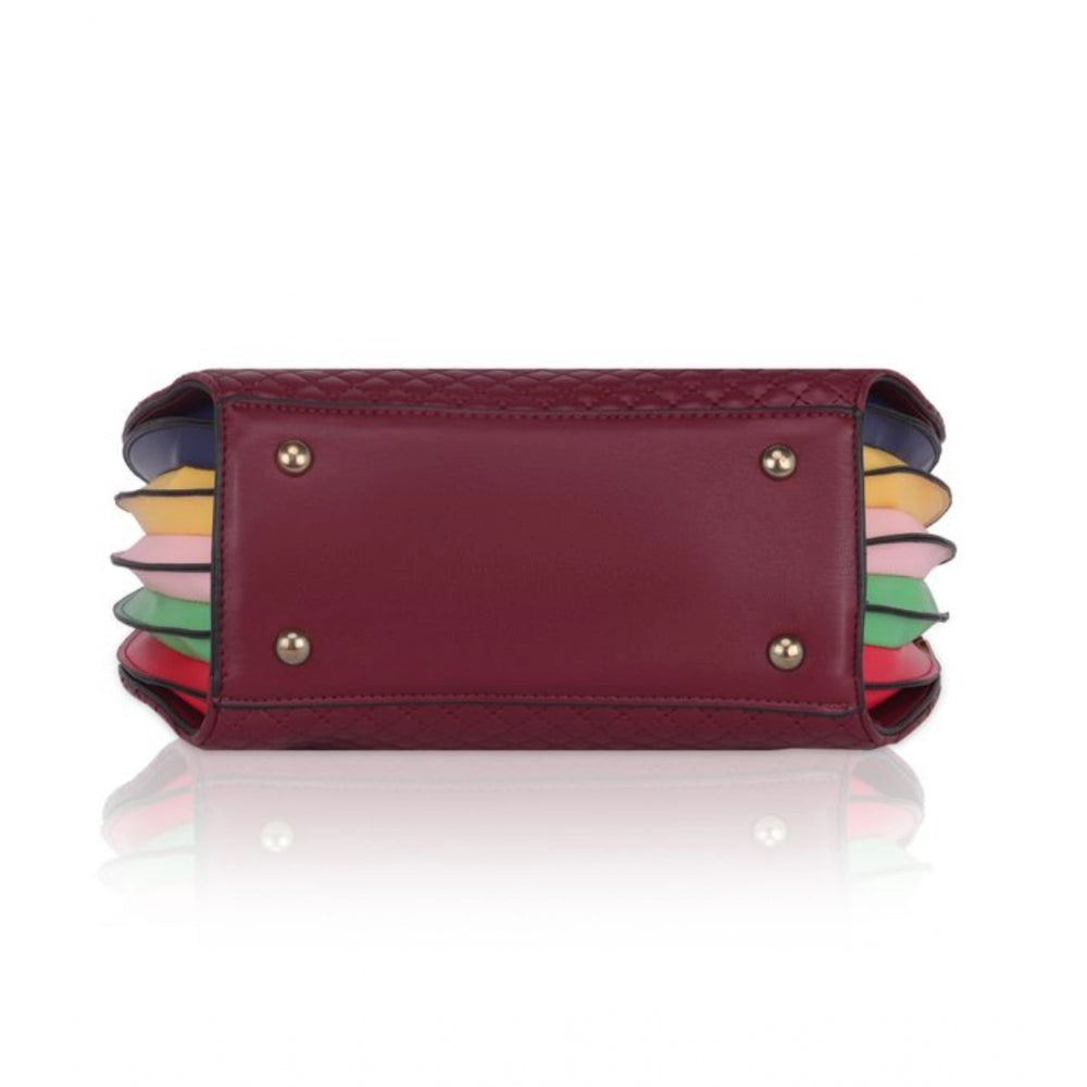 Generic Women's Faux Leather Printed Adjustable Long Belt Handbag (Maroon)