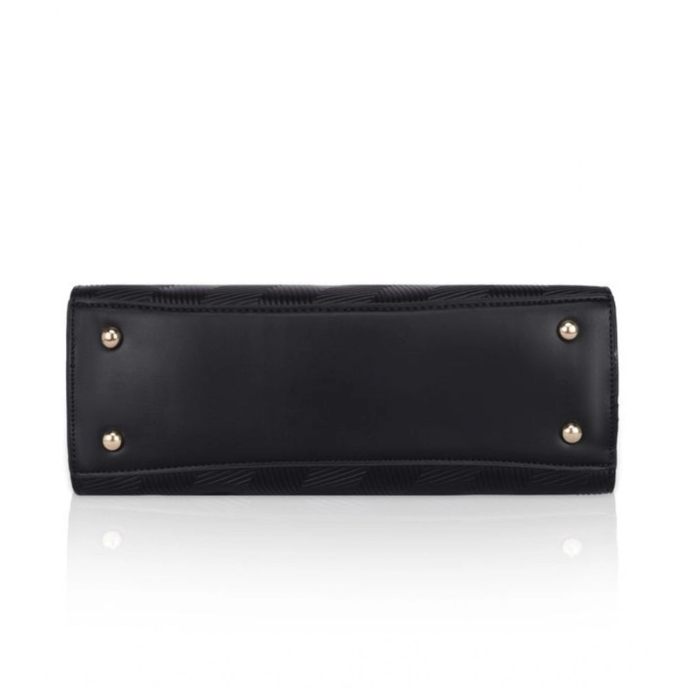 Generic Women's Faux Leather Textured Adjustable Long Belt Handbag (Black)
