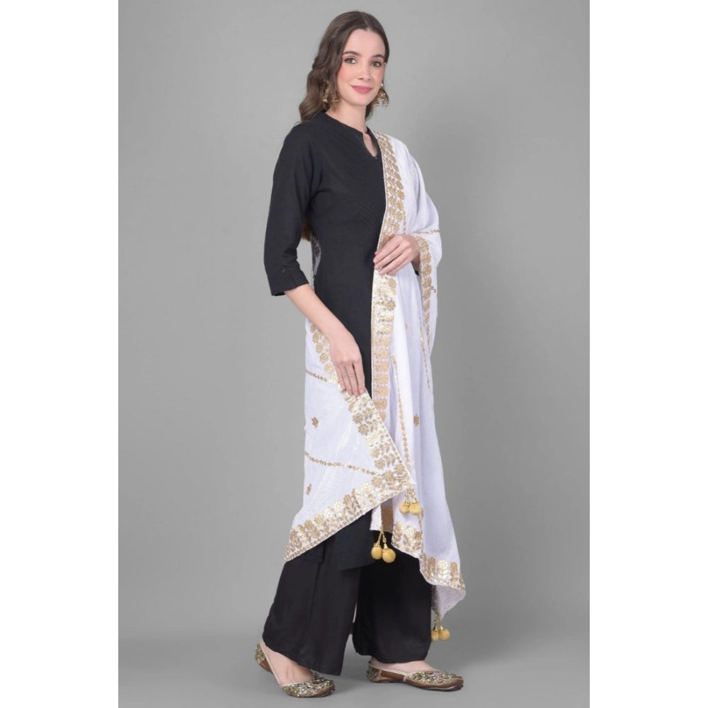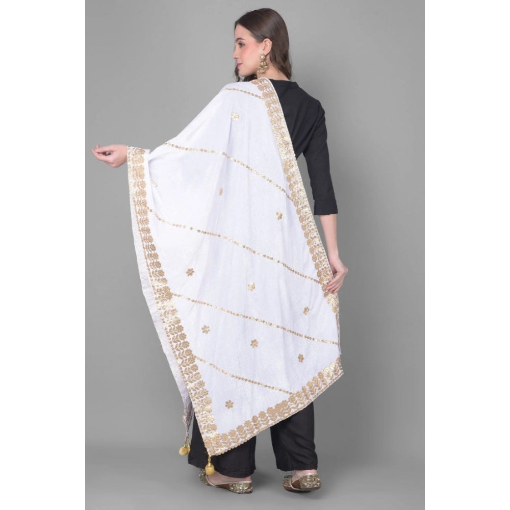 Generic Women's Velvet Gotta Patti Dupatta (Off White, Length: 2.25 to 2.50 Mtr)